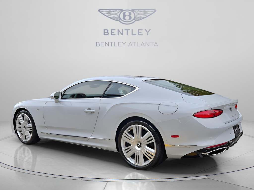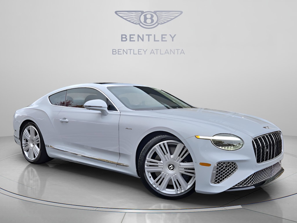 > Discover the 2026 Bentley Continental GT Azure in Ice Metallic at Bentley Atlanta handcrafted luxury grand tourer featuring Wellness Seating, Bang & Olufsen sound, and exquisite Eucalyptus veneer.