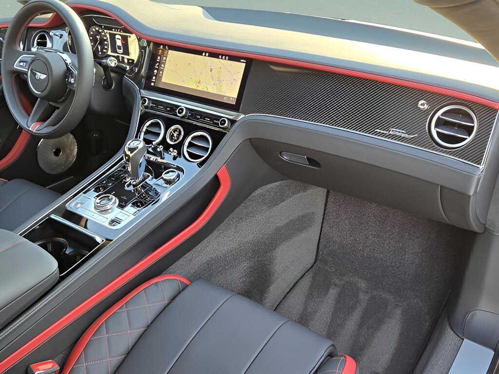 Inside, the cabin is a masterclass in modern luxury. Rich **Hotspur leather** is complemented by **Beluga secondary hide**, contrast stitching, and **diamond-quilted seats**, creating a bold yet elegant atmosphere. High-gloss **carbon fiber veneer** flows seamlessly throughout the interior, paired with illuminated Bentley treadplates and deep-pile overmats for a truly indulgent experience.